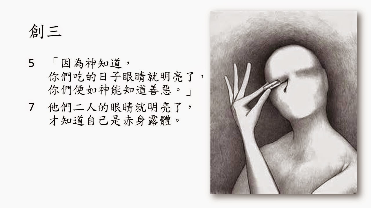 2. 當亞當夏娃背叛神吃了分辦善惡樹上的果子的時候,他們真的「眼睛就明亮了」,而且立刻知道「自己是赤身露體」(創三 7)。「眼睛明亮」是什麼意思?這裡「眼睛明亮」並不是好事,「眼睛明亮,能知善惡」的意思是從此人以自己的是為是、非為非,自己走自己的路,宣告與神分開,要與神一樣自主自決與自治。廿一世紀的人,若從一個人本主義的思想來看,這正是人存在的意義!「我是我未來的主人!」「我是我唯一的主宰!」「我做自已的決定!」是不是這樣?但從聖經的角度來看,這正是人類犯罪的情況,亞當夏娃犯罪的核心意義正是背叛創造他們的神,自以為是,不以神為主宰,被造之物卻拒絶創造者的旨意,離棄神,與神隔絶。